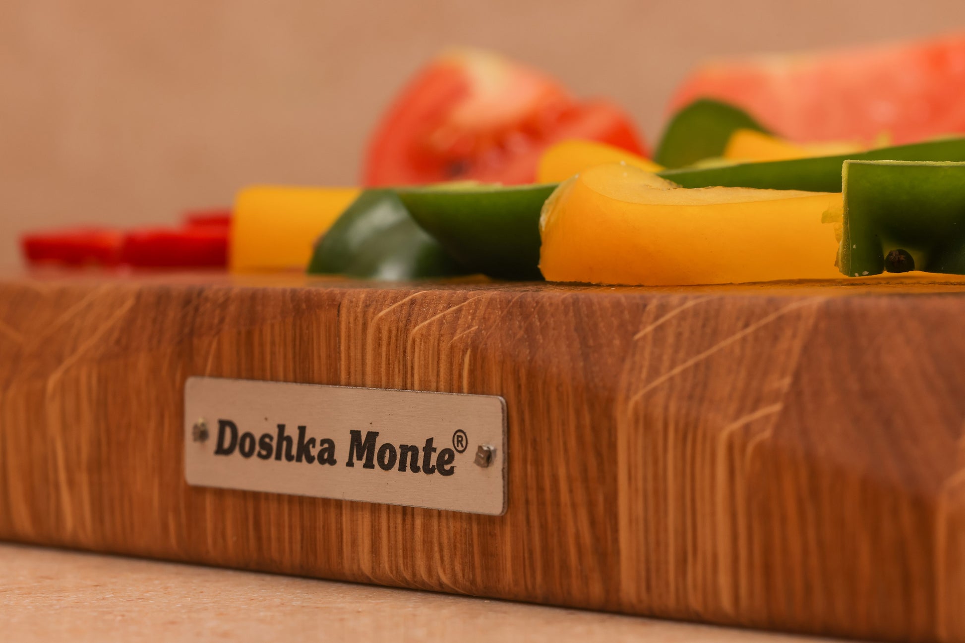 The end grain structure protects knife edges, absorbs shock, and ensures long-lasting durability. Each board features rich wood grain patterns, polished corners, and a signature Doshka Monte stainless logo plate — a true kitchen essential that doubles as elegant décor.
